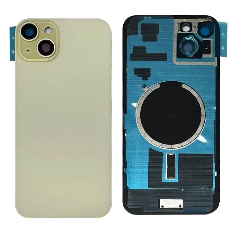 iPhone 15 Plus Back Glass Battery Cover Glass w/ Magsafe Magnet / Camera Lens / Camera Bezel / Metal Plate (Yellow)